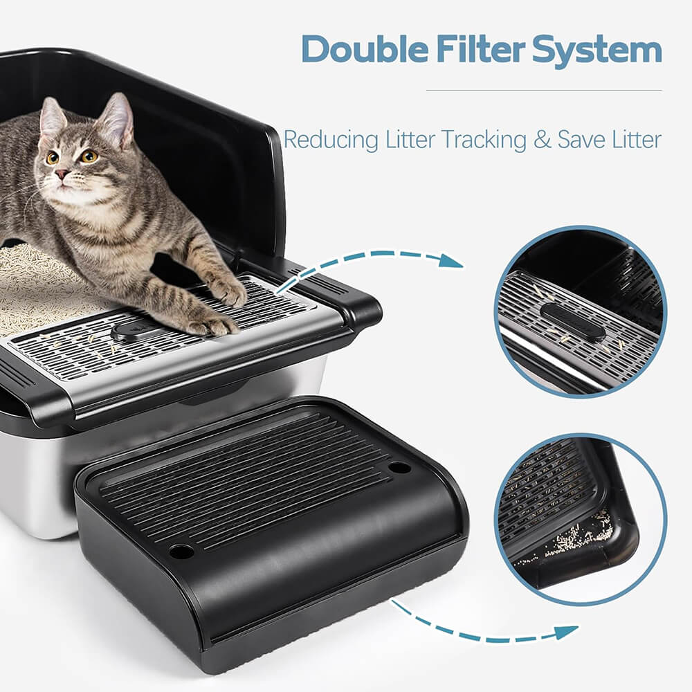 Designed with dual filtration to effectively trap stray litter and reduce tracking, keeping your floors cleaner. It also helps collect reusable litter, minimizing waste and saving you money over time.