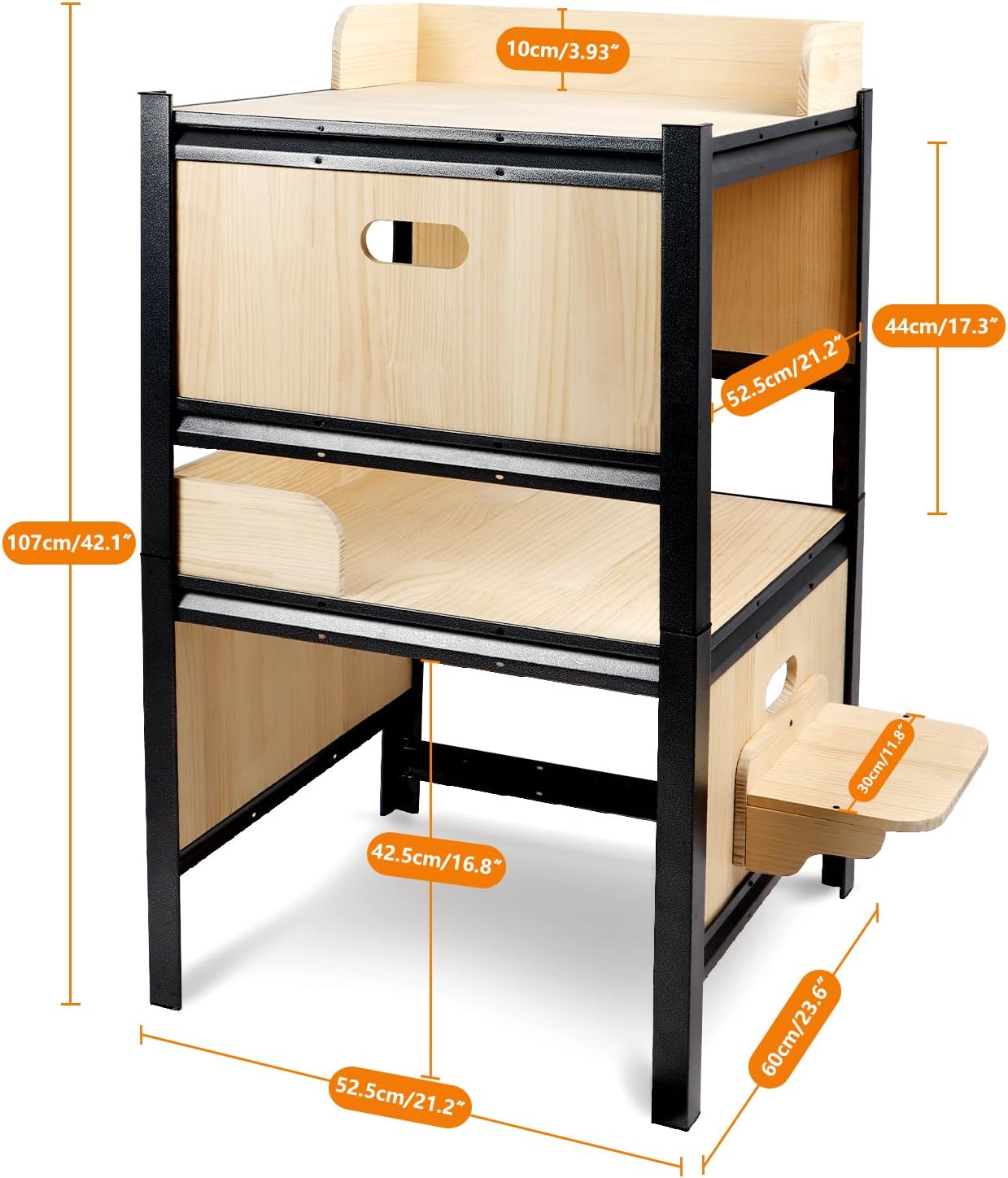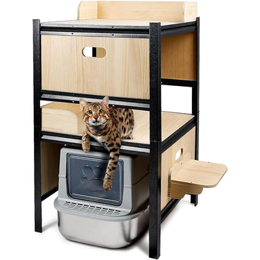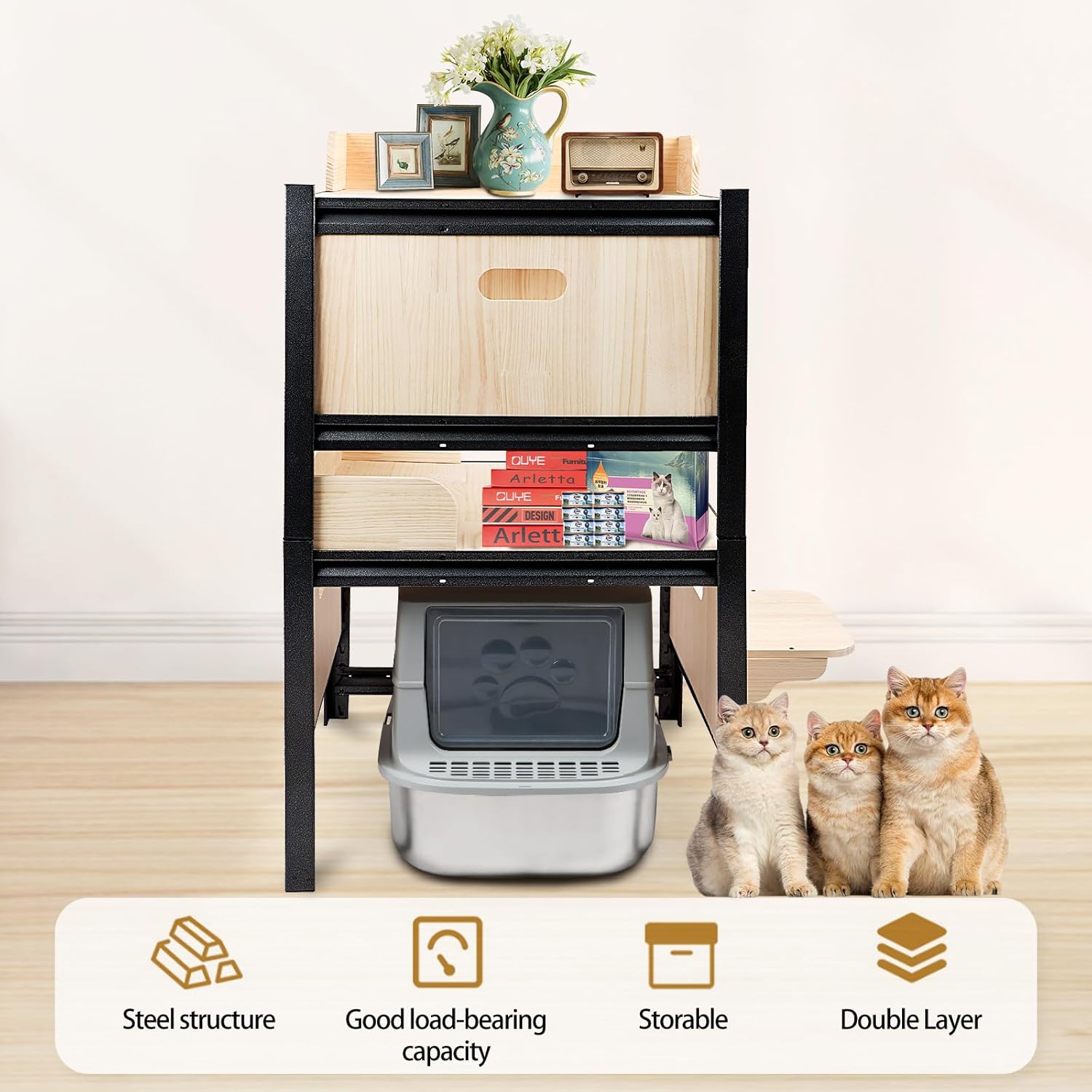 Wooden Double Layers Cat Litter Box Shelves with Metal Frame