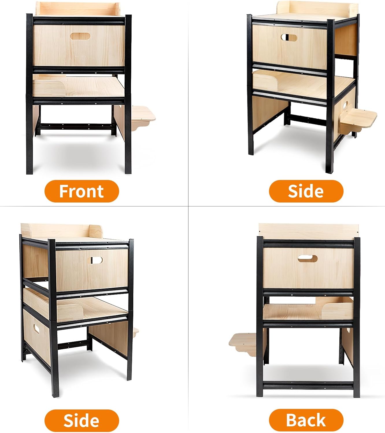 - Thoughtful Cat -Friendly Layout – Cats can climb using wooden side treads; small stoppers prevent items from falling.