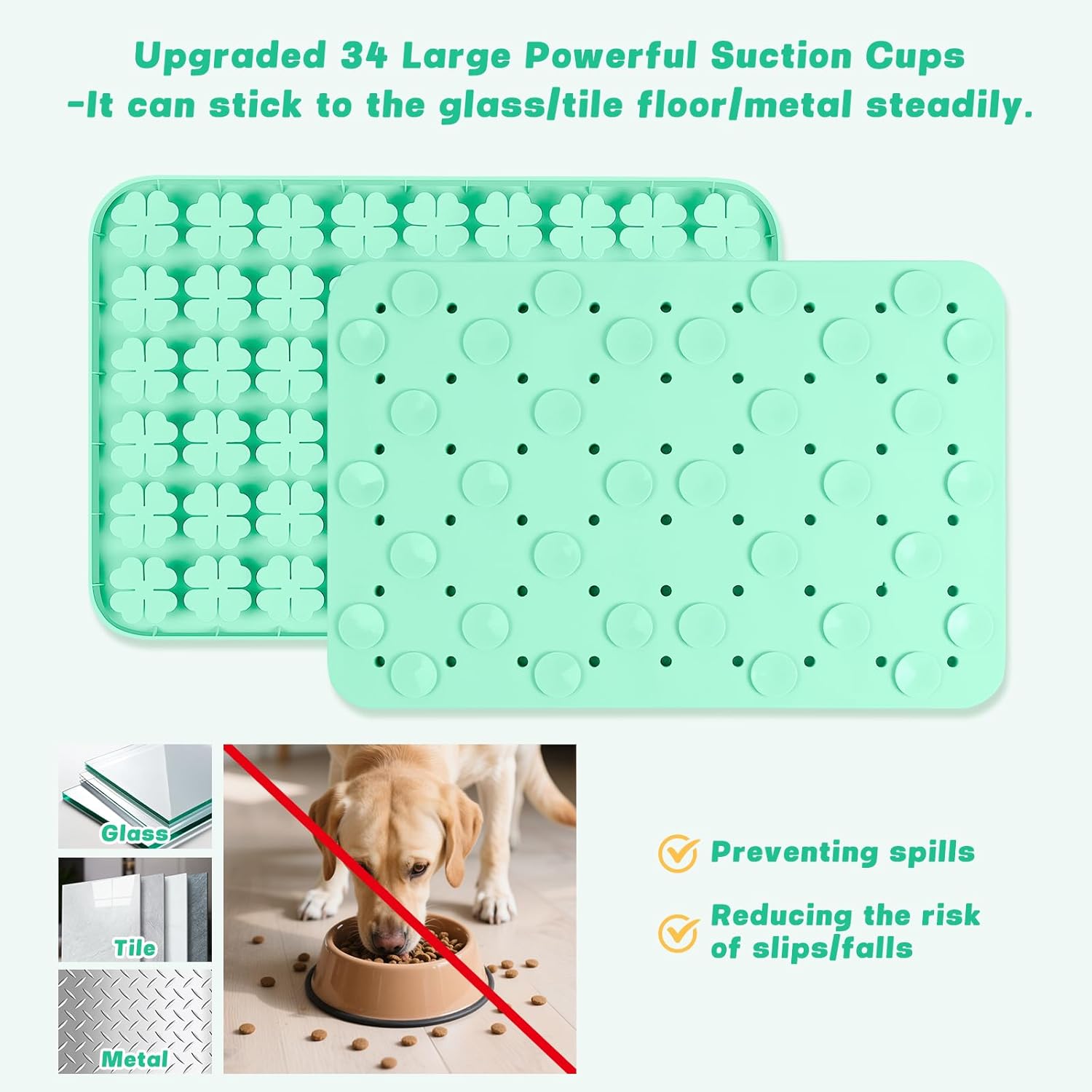 2. Extra-Strong Suction Cups – 34 enlarged suction cups keep the mat firmly in place on any surface, preventing spills or sliding during licking or sniffing.