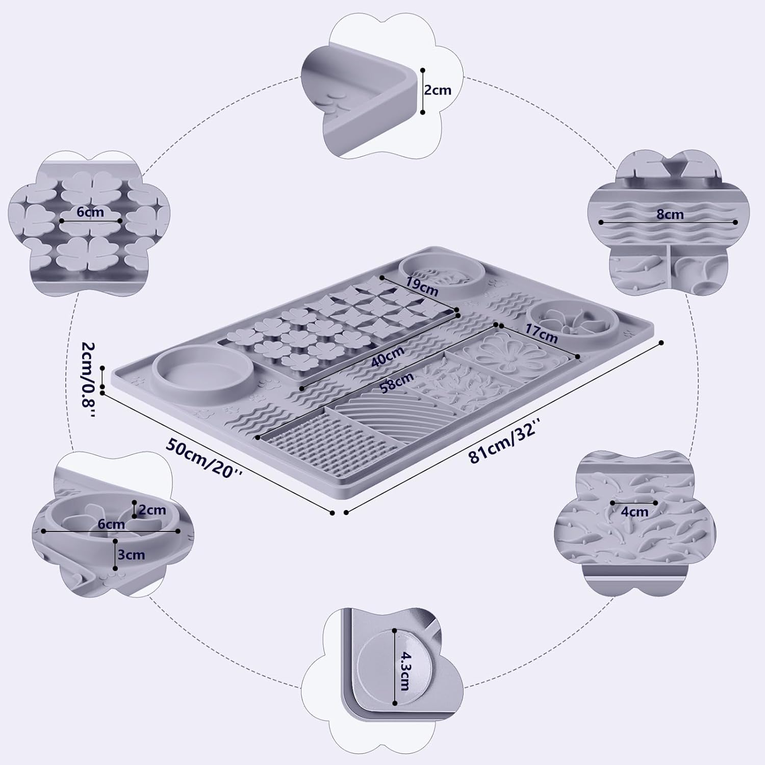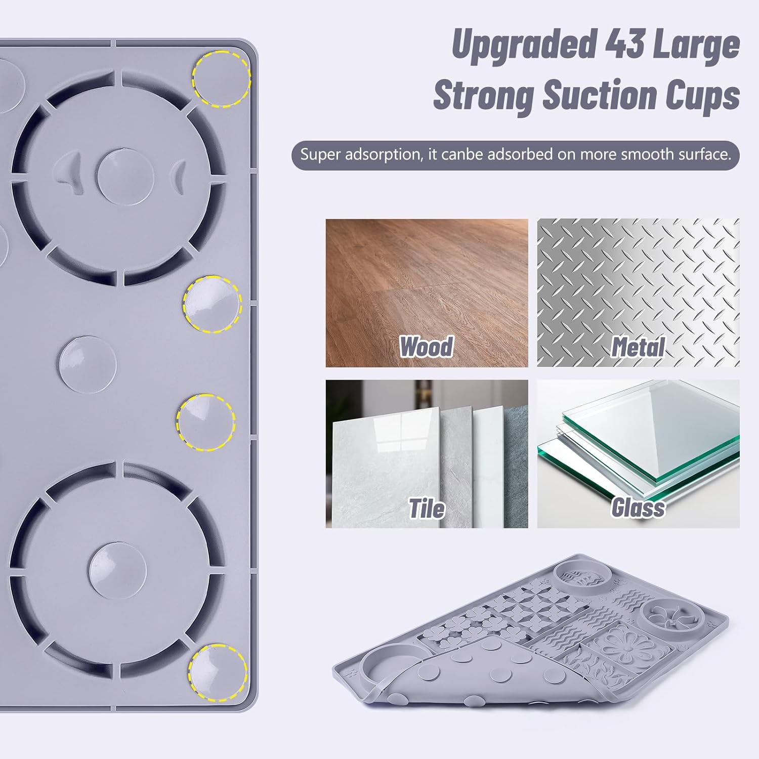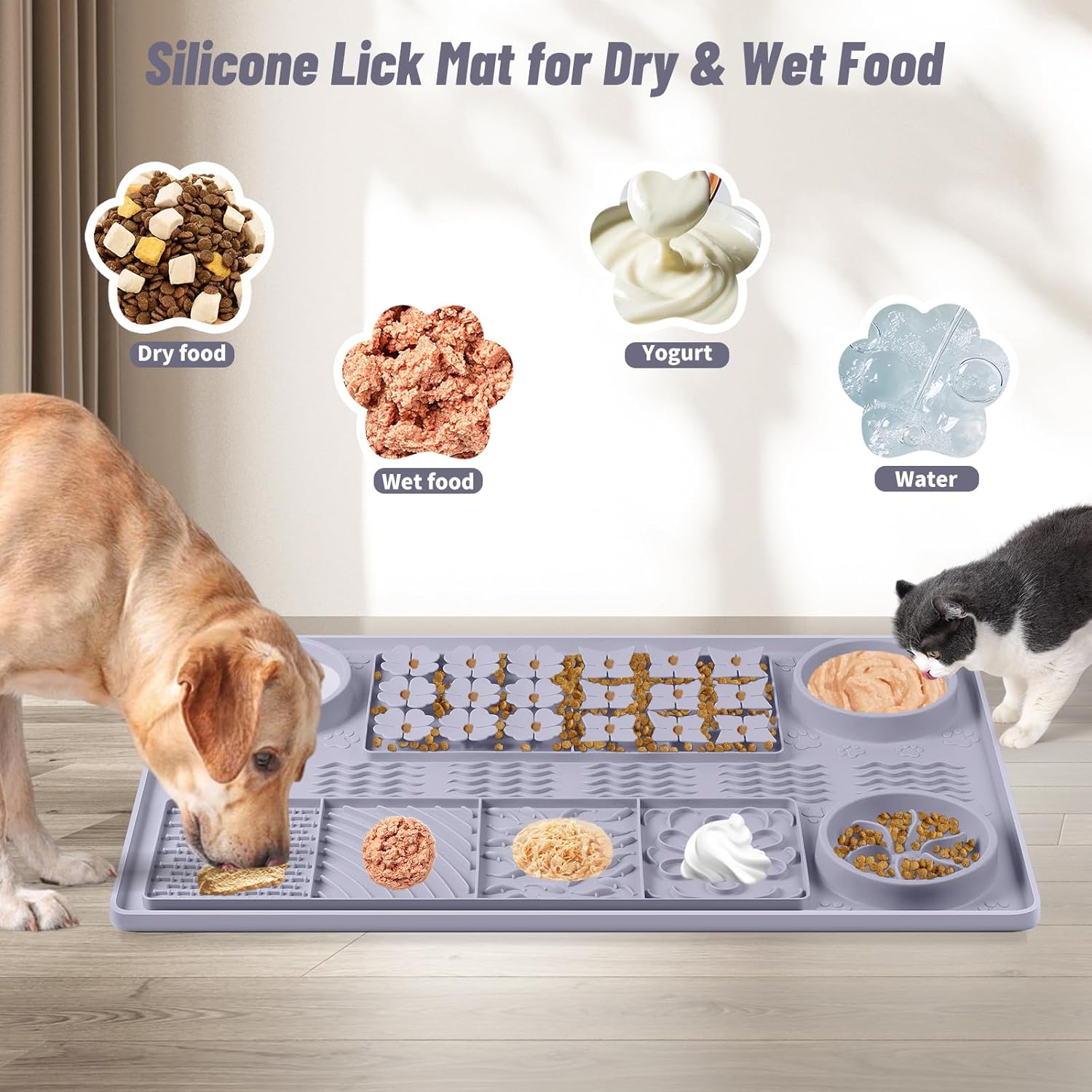 - Large, Non-Slip Design – Features 43 strong suction cups for stability and an oversized 32" x 20" (81 x 50cm) layout that accommodates wet food, dry food, and treats without mess.