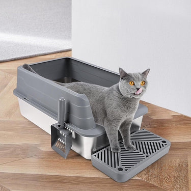 Made of non-porous stainless steel, this litter box effectively prevents odor absorption, keeping your home smelling fresh. The high-sided design helps contain litter scatter and urine splashes, ensuring a cleaner, more hygienic environment for both you and your cat.