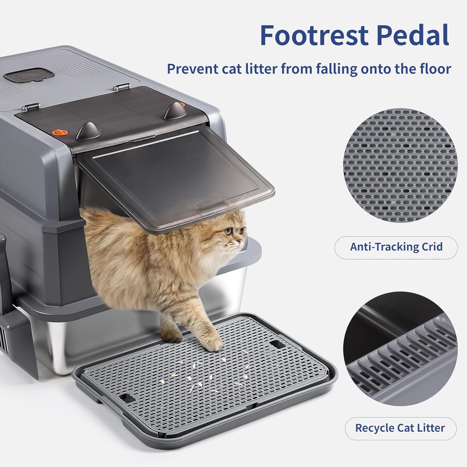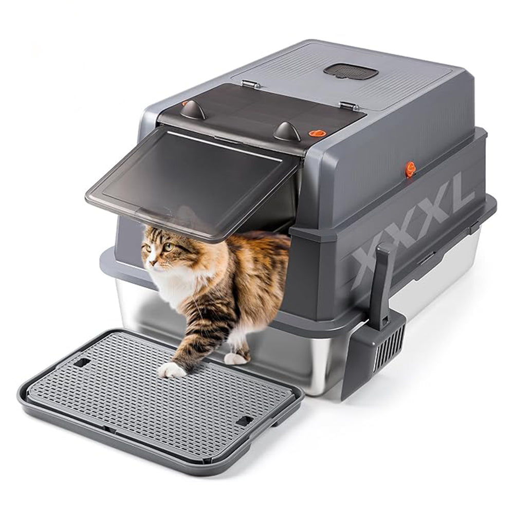 XXXL Extra Large Black Fully enclosed Stainless Steel Litter Box with Lid