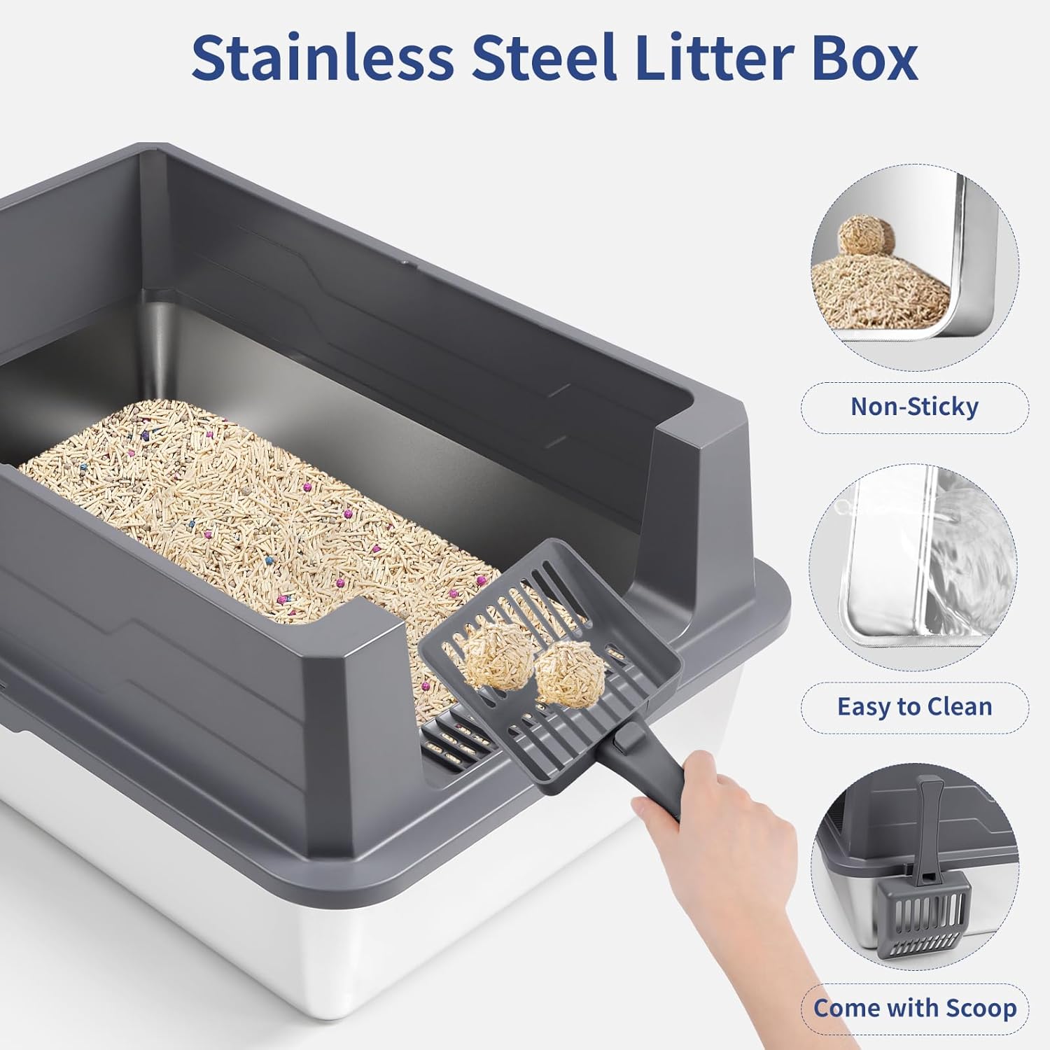 1* stainless steel cat litter box with lid (removable high sides enclosure and stainless steel litter pan tray)