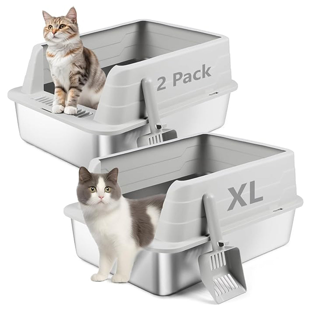 XL 2 Pack Light Gray Stainless Steel Litter Box