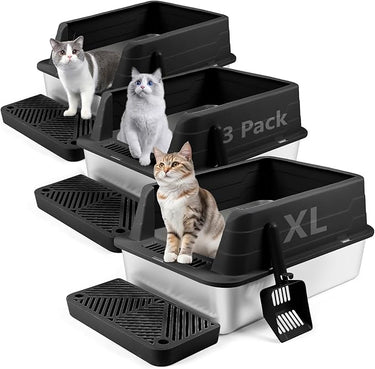 XL 3 Pack Black Stainless Steel Litter Box with Filter Pedal