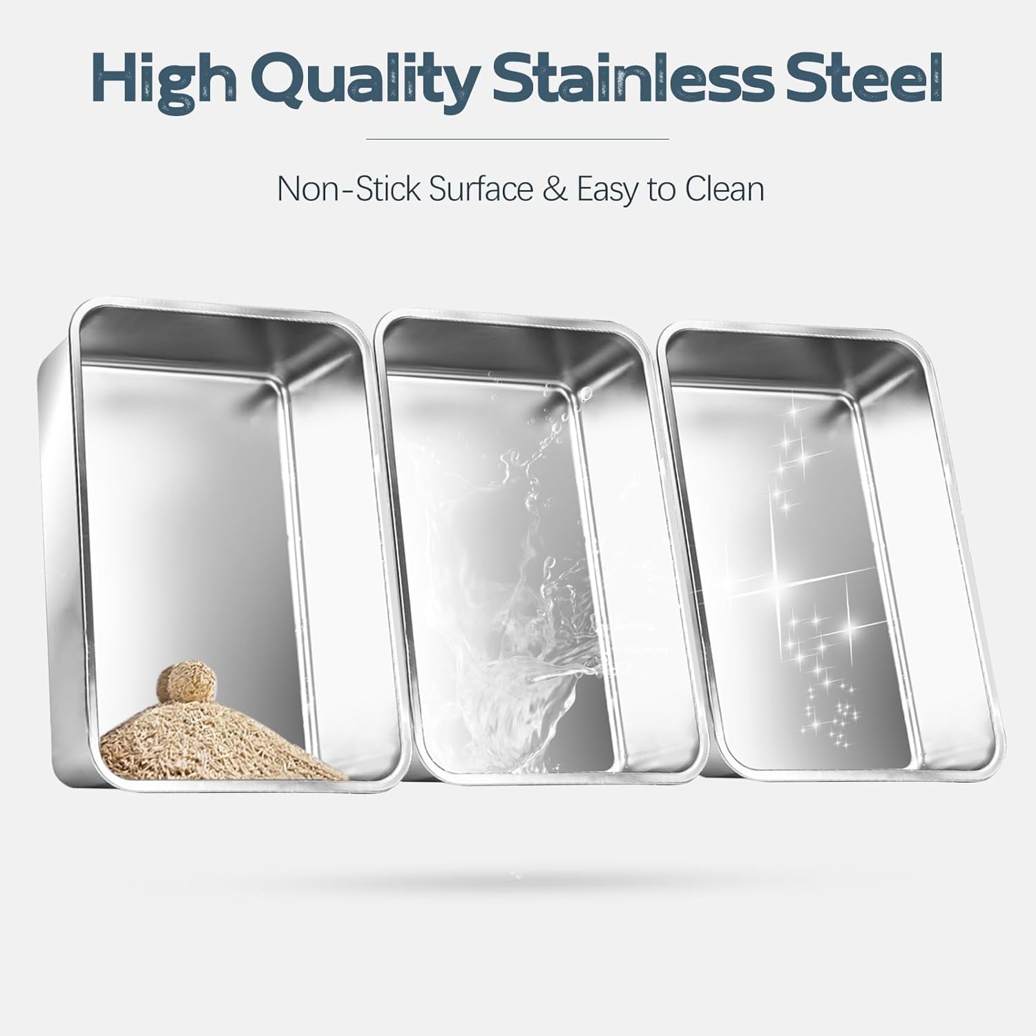 Made of non-porous stainless steel, this litter box effectively prevents odor absorption, keeping your home smelling fresh. The high-sided design helps contain litter scatter and urine splashes, ensuring a cleaner, more hygienic environment for both you and your cat.