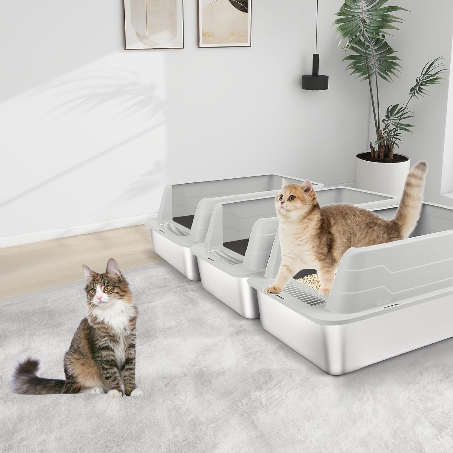 Designed with a spacious interior, this stainless steel litter box provides plenty of room for cats of all sizes — from small kittens to large breeds like Maine Coons. Its extra-large capacity also makes it ideal for multi-cat households, ensuring every pet has enough space to move comfortably and use the box with ease.