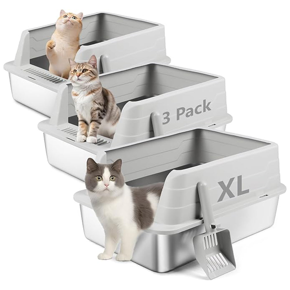 XL 3 Pack Light Gray Stainless Steel Litter Box