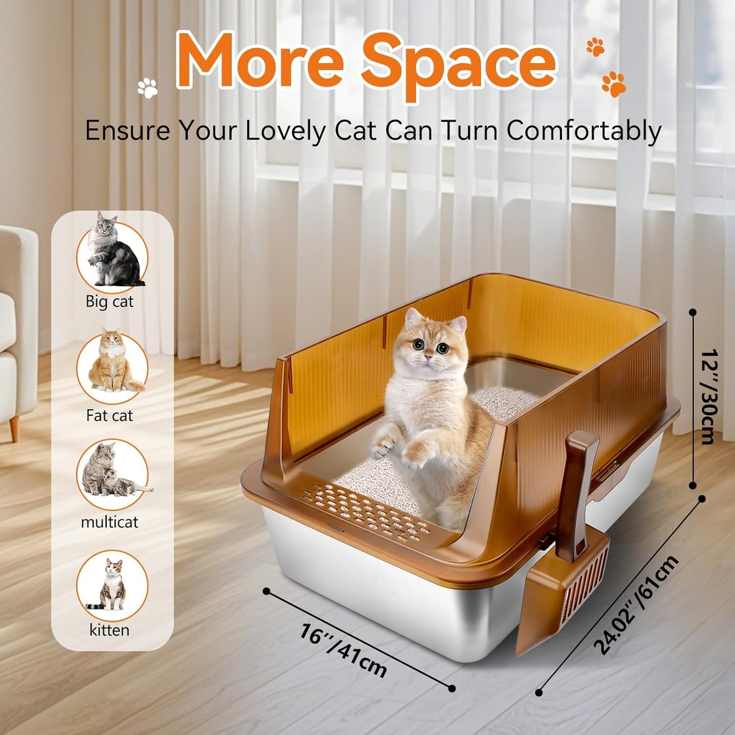 The smooth, non-stick stainless steel surface makes cleaning quick and hassle-free. Simply scoop and pour — no stubborn residue or odor buildup. Keep your cat’s litter area fresh and spotless with minimal effort.
