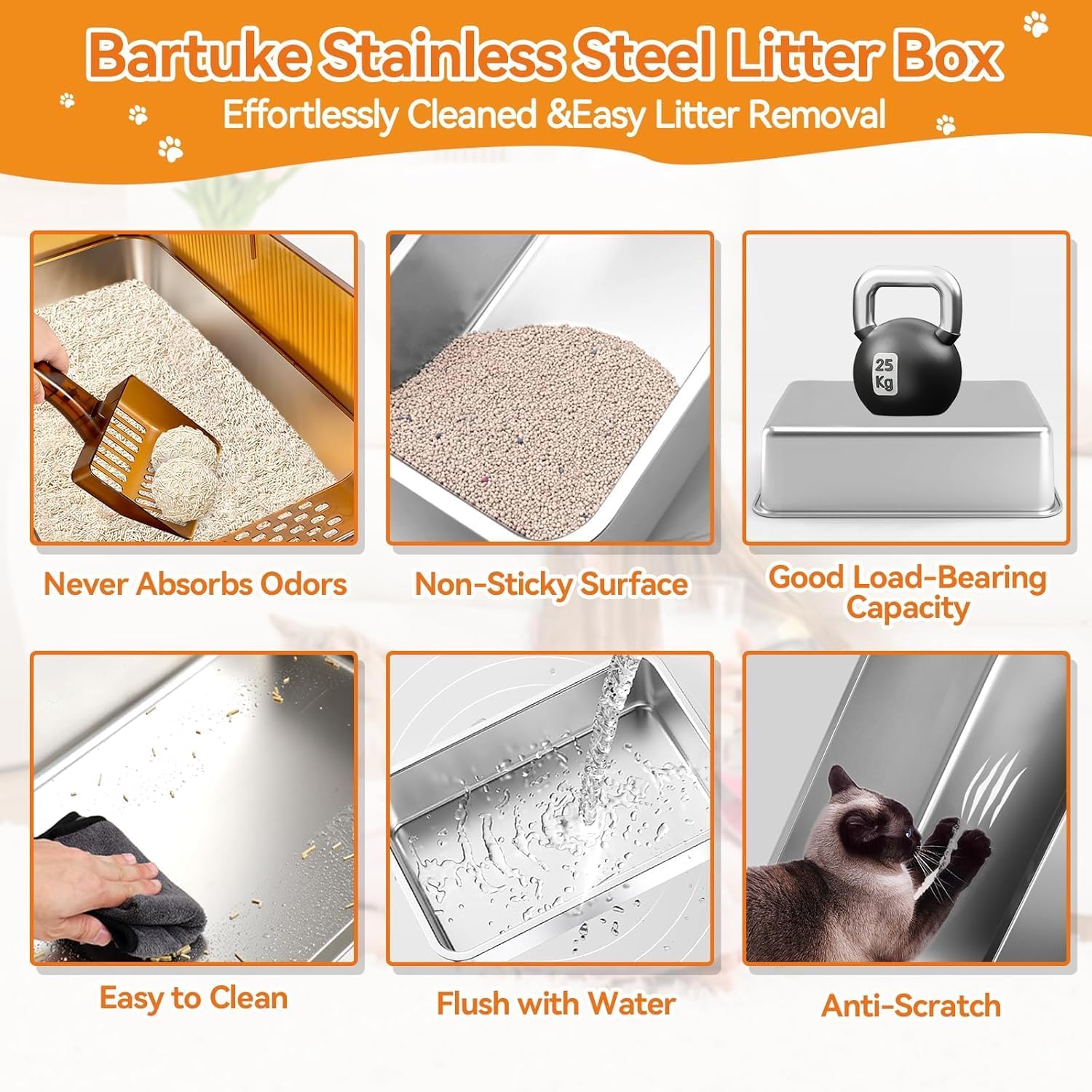 Ensure your lovely cat can move, stretch, and turn comfortably with Bartuke’s spacious stainless steel litter box — perfect for larger breeds or multi-cat homes.