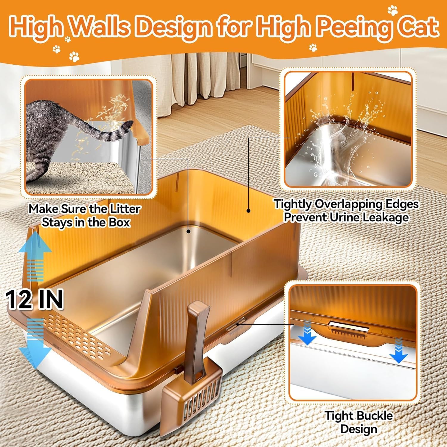 Keep litter and urine securely inside the box with Bartuke’s 12-inch high-sided stainless steel design. The tightly overlapping edges and secure buckle structure effectively prevent leaks and mess, ensuring a cleaner home environment.
