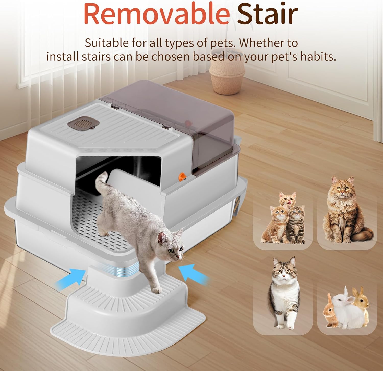 This litter box comes with a removable two-step stair, making it easy for pets of all sizes and ages to enter and exit comfortably. You can choose to install the stairs or leave them off based on your pet’s habits and preferences, offering flexible customization for a stress-free litter experience.