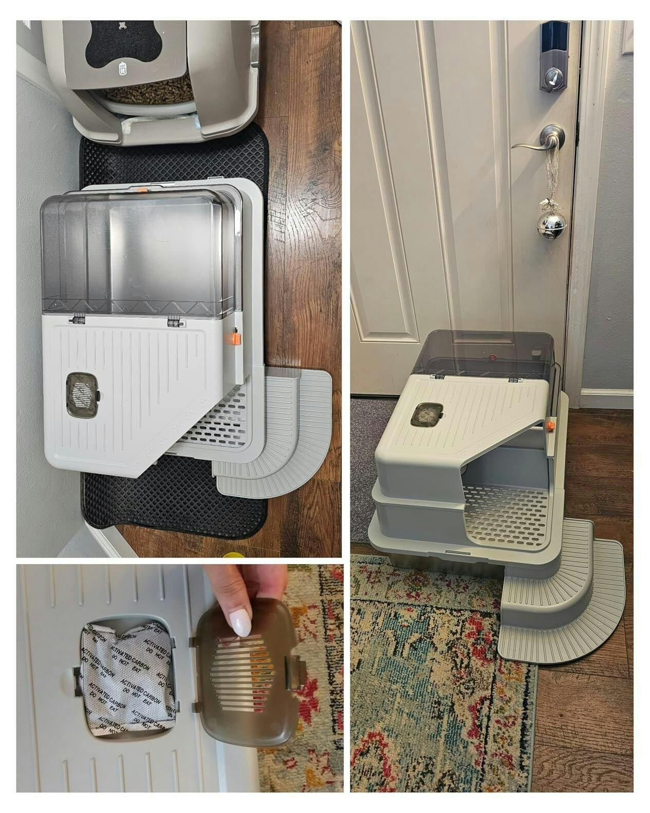 Built-in carbon filters effectively purify the air and eliminate unpleasant odors, keeping your home smelling fresh and clean. Perfect for multi-cat households or large litter boxes, it ensures a more hygienic environment for both you and your pets.