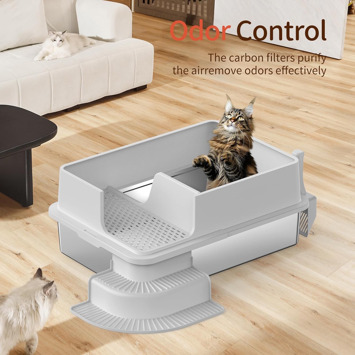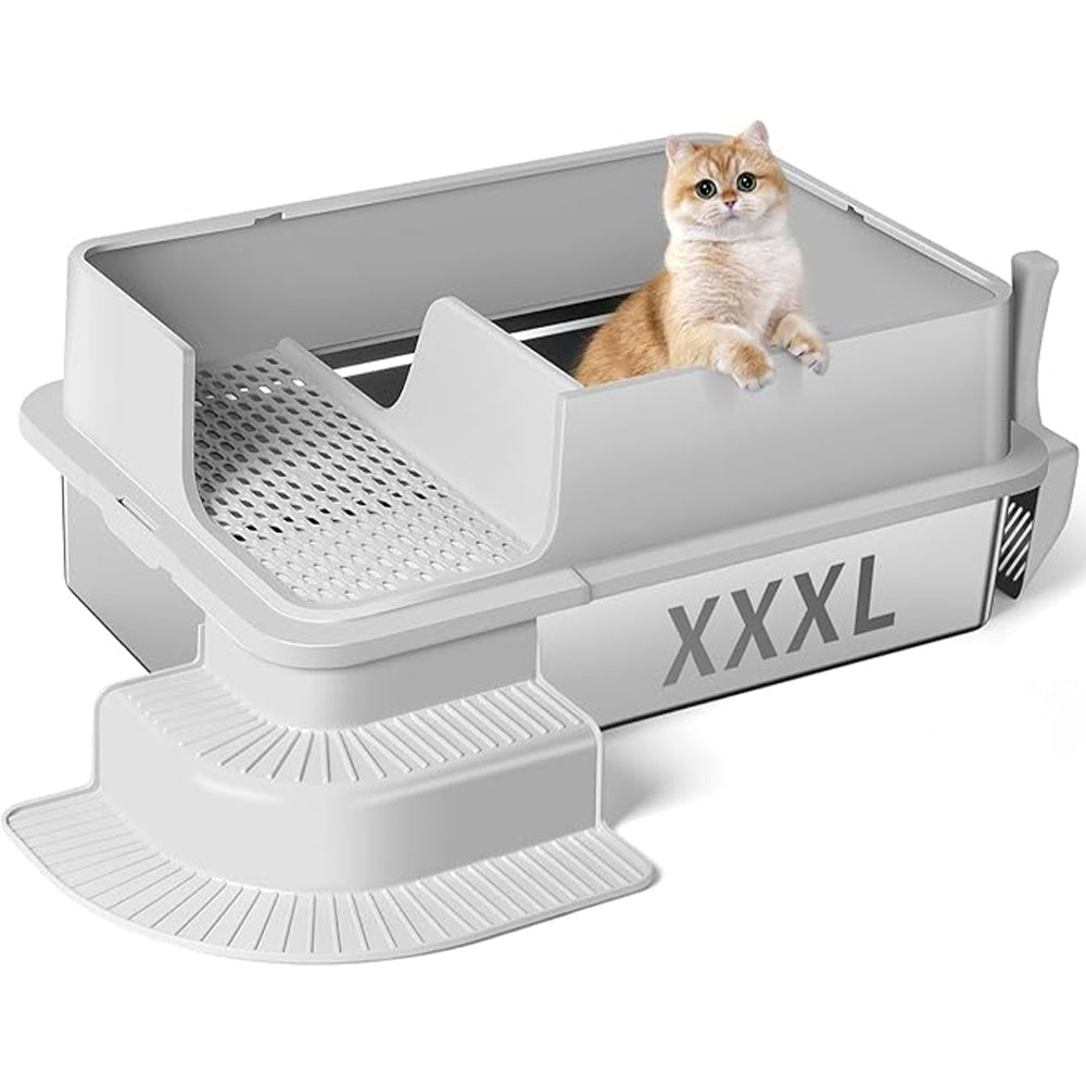 XXXL Light Gray Semi Enclosed Stainless Steel Litter Box with Step