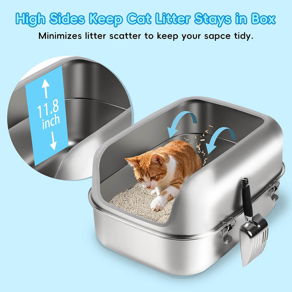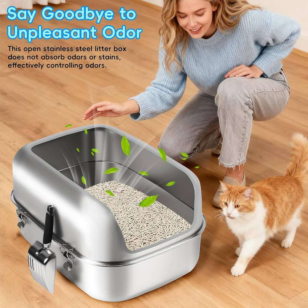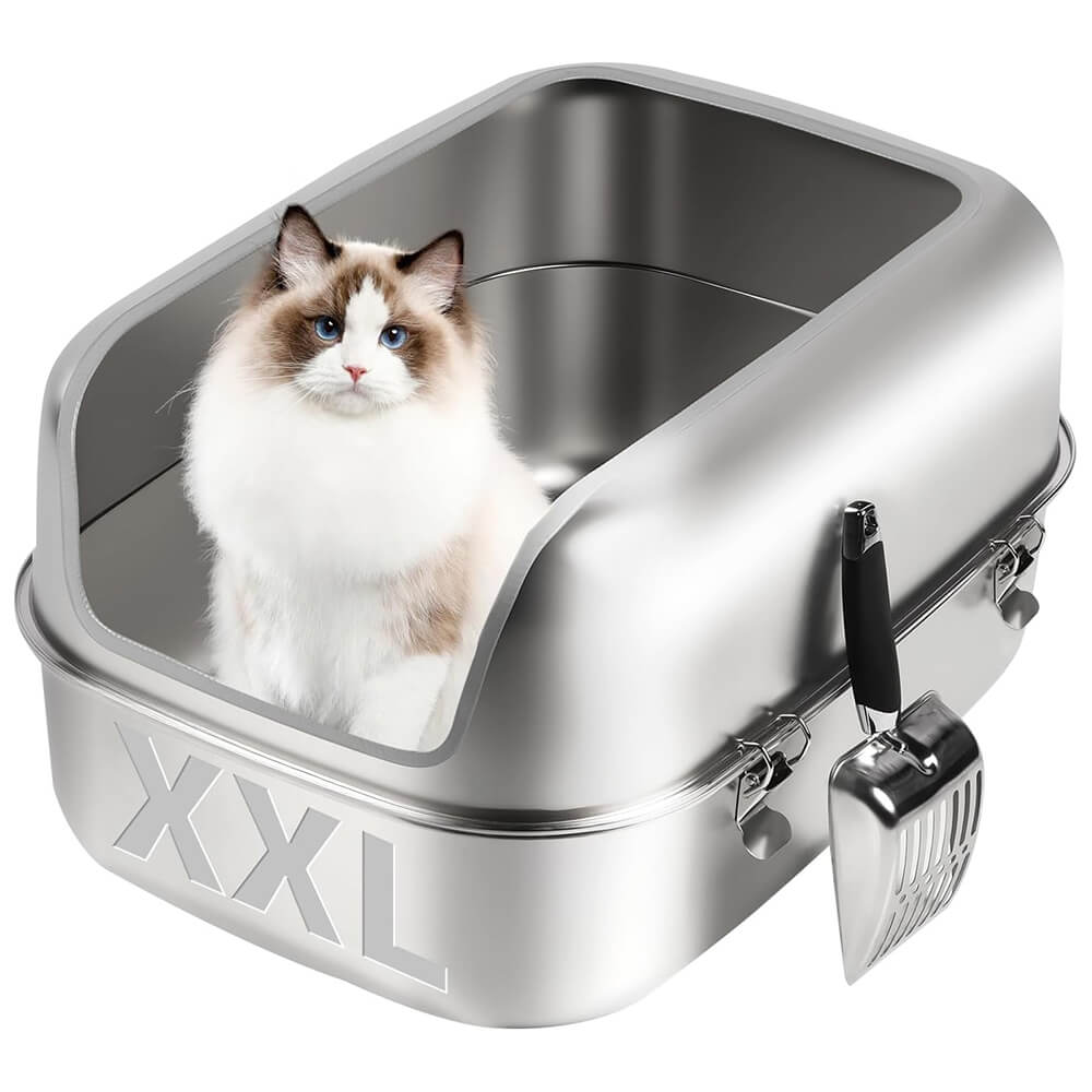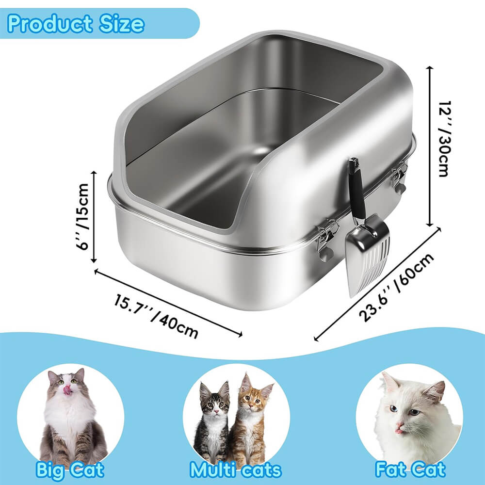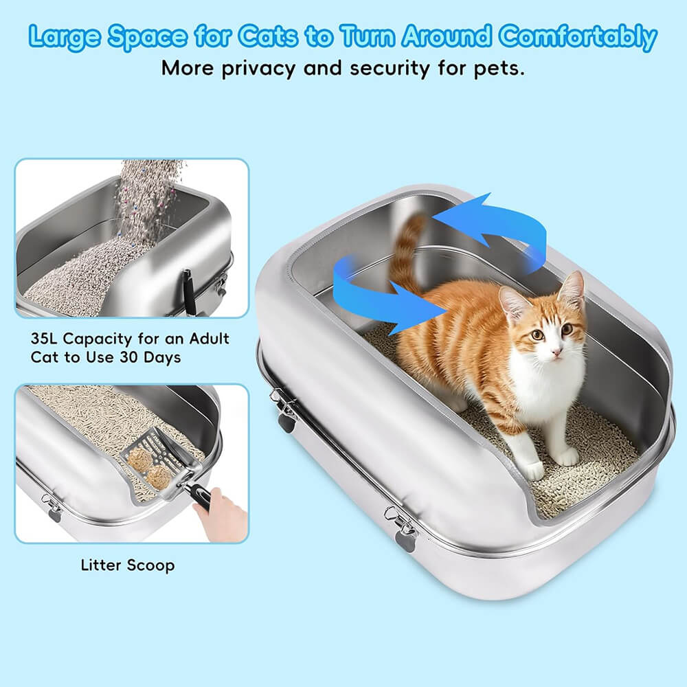 XXL Semi Enclosed Removable Stainless Steel Cat Litter Box