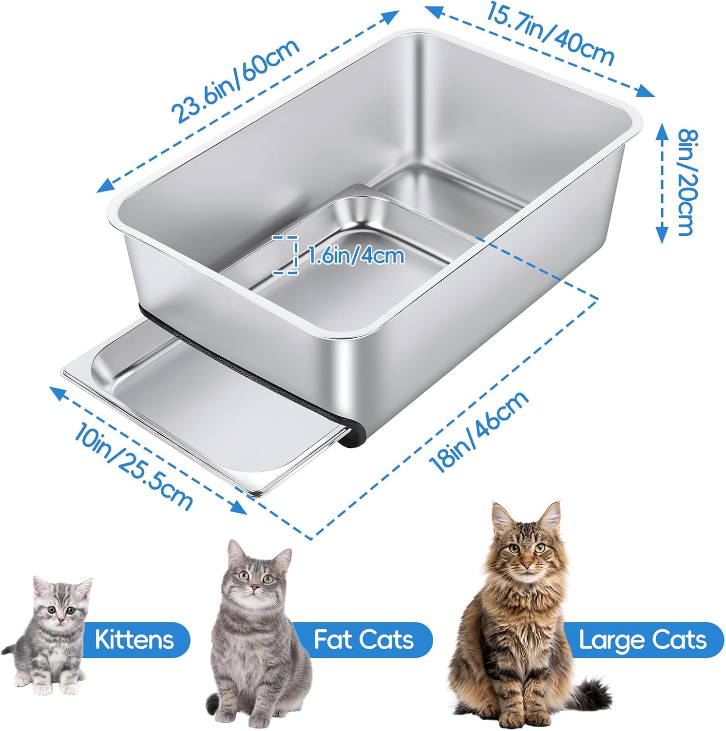 23.6" L x 15.7" Stainless Steel Litter Box with Pull-Out Pan