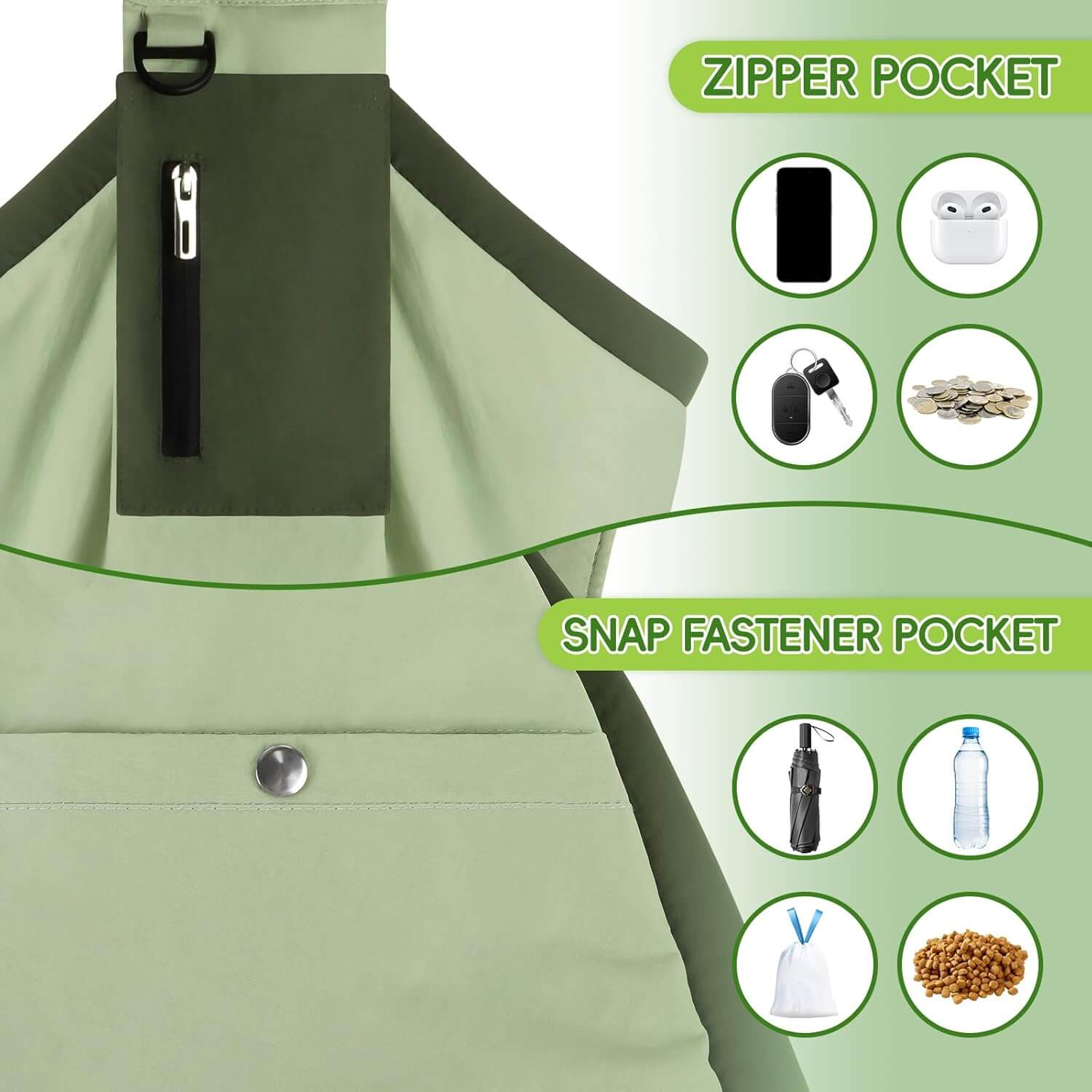 - Functional Storage: Includes a large front pocket for essentials and a shoulder pocket for your phone—keeping your hands free.