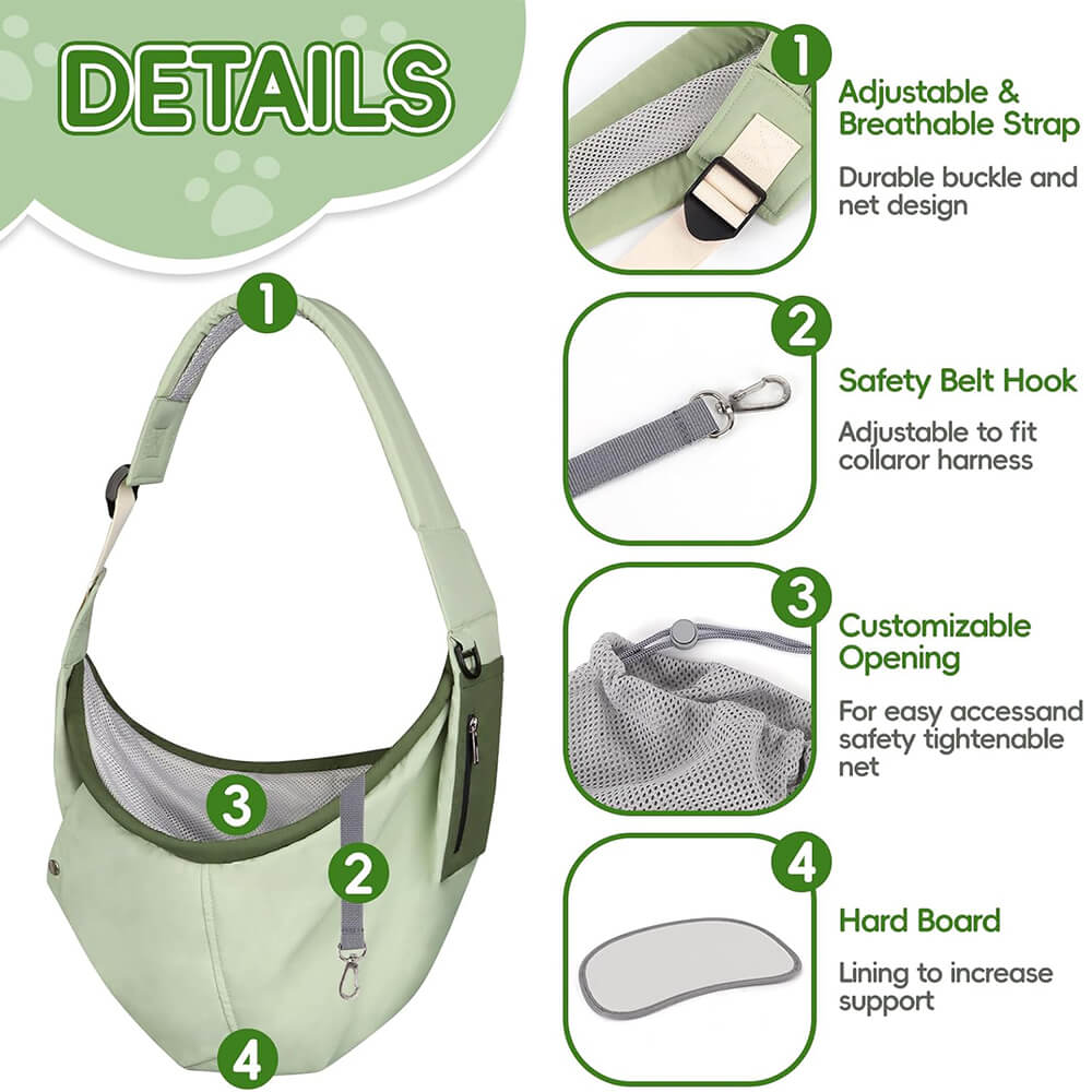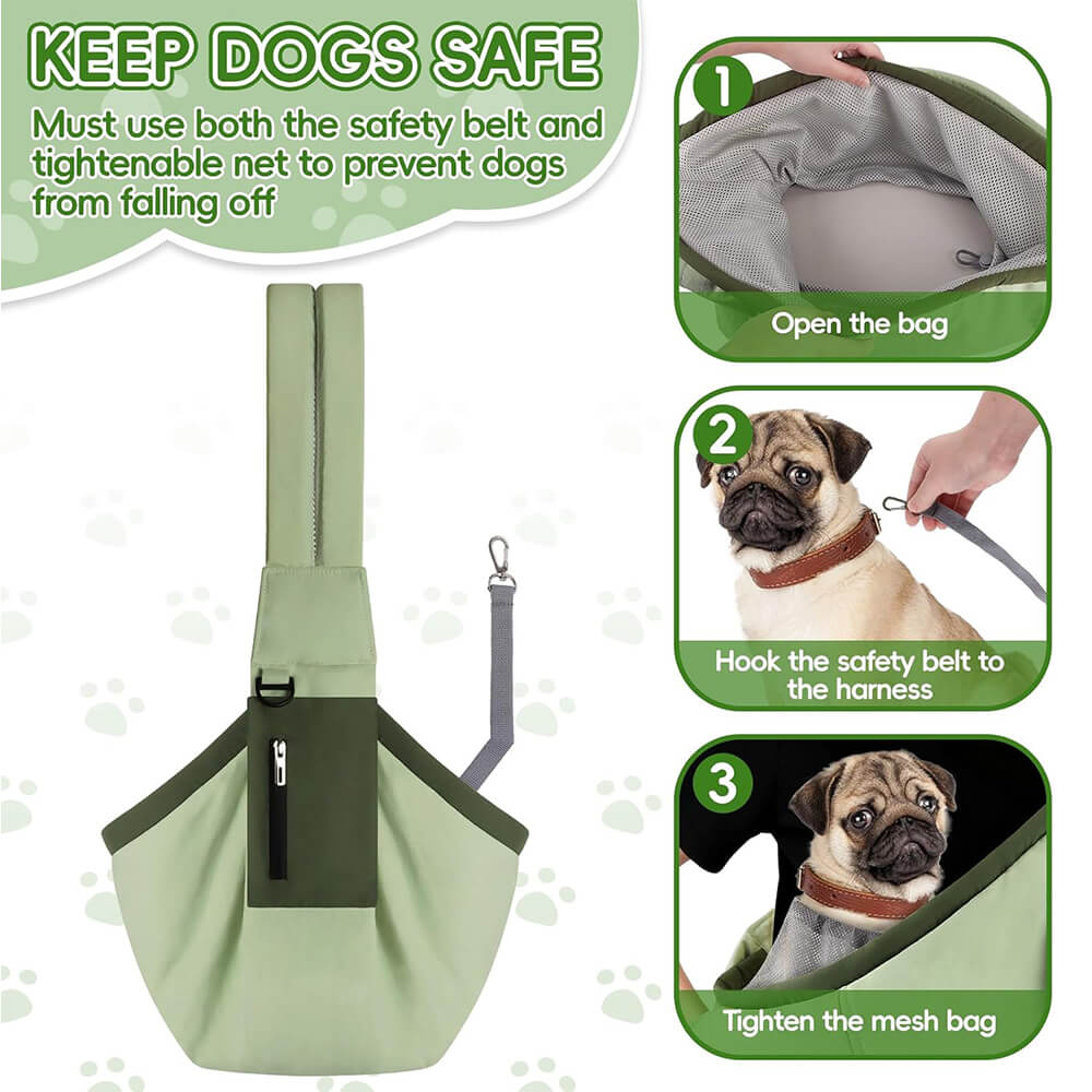 Dog Carrier Sling for Small Dogs and Cats - Green
