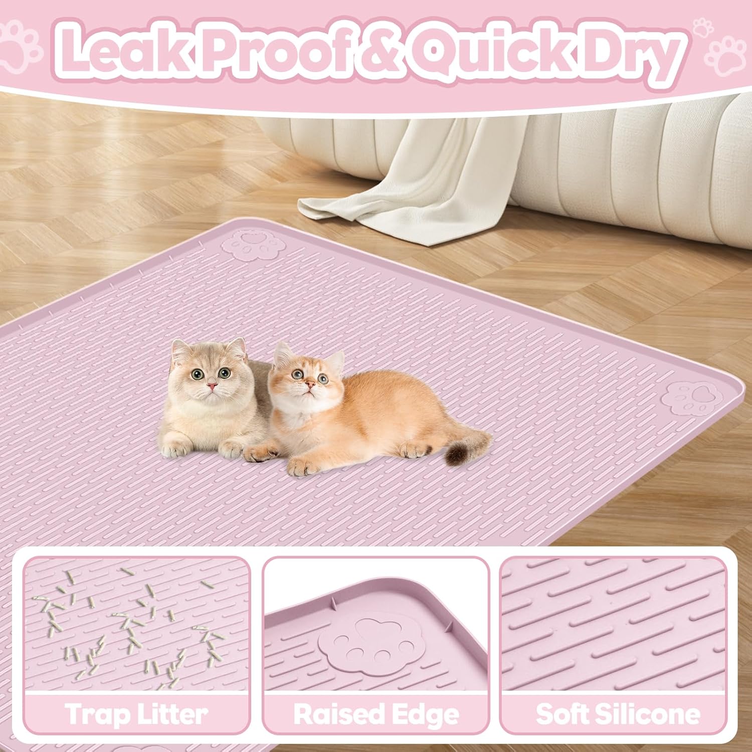 Pink Silicone Stripe Cat Litter Mat