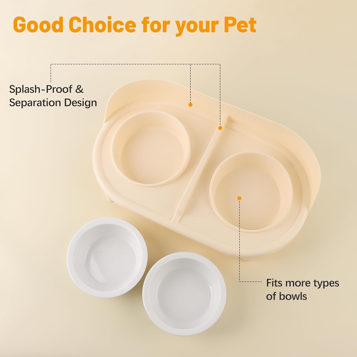💧 Splash-Proof & Dual-Bowl Design – High-edge barrier prevents spills, while partition keeps food and water separate and clean.
