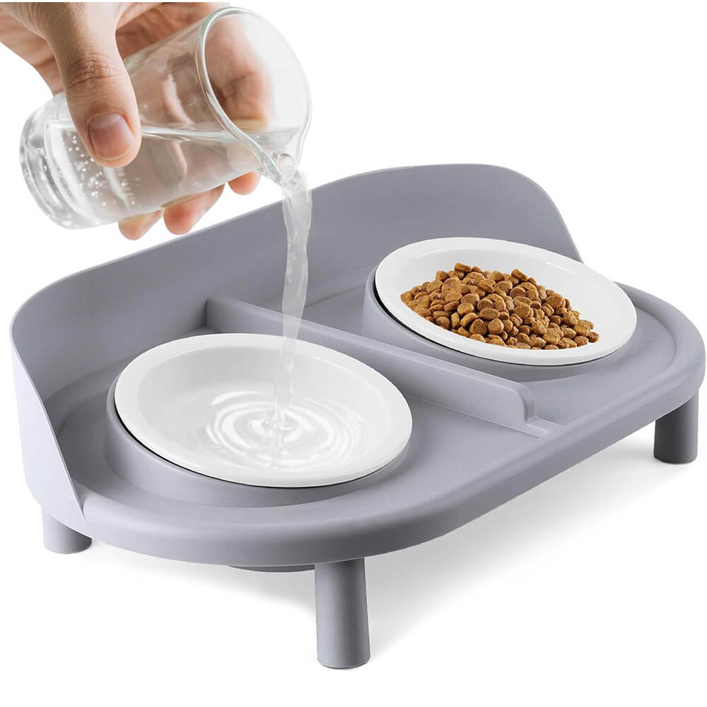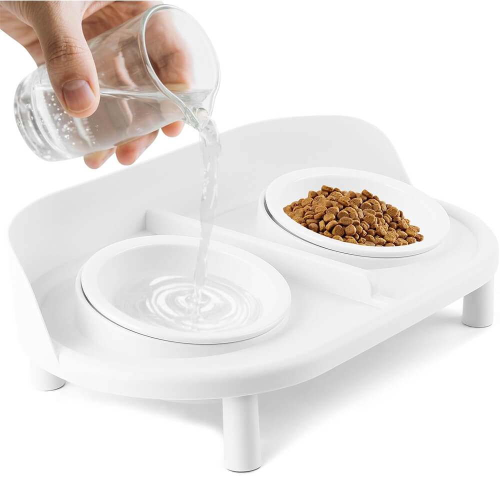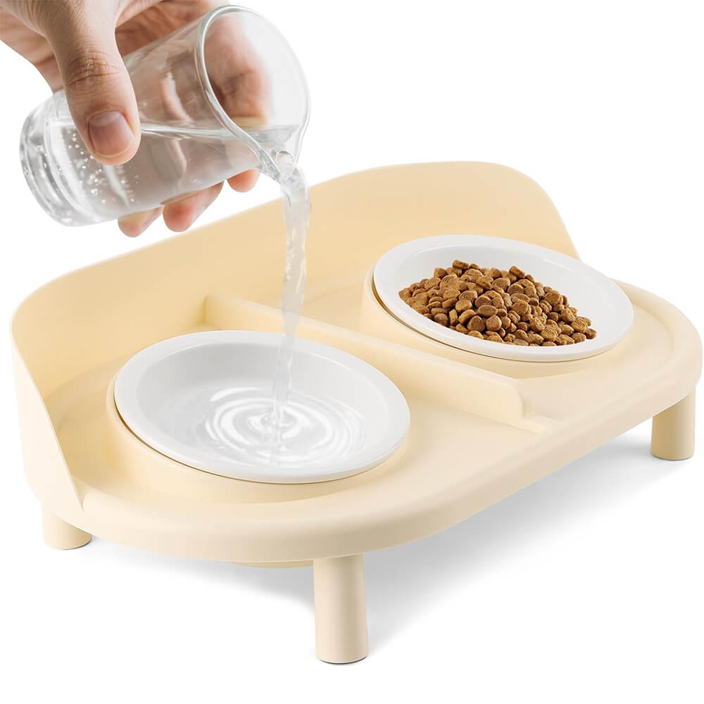 Tilted Raised Cat Food and Water Elevated Bowl with 2 Pcs Ceramic Pet Bowls