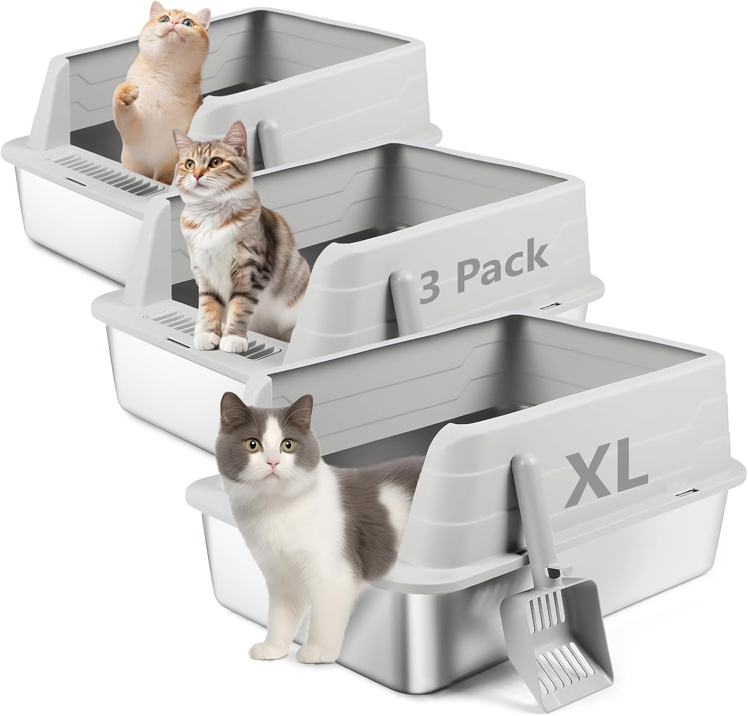 XL 3 Pack Light Gray Stainless Steel Litter Box