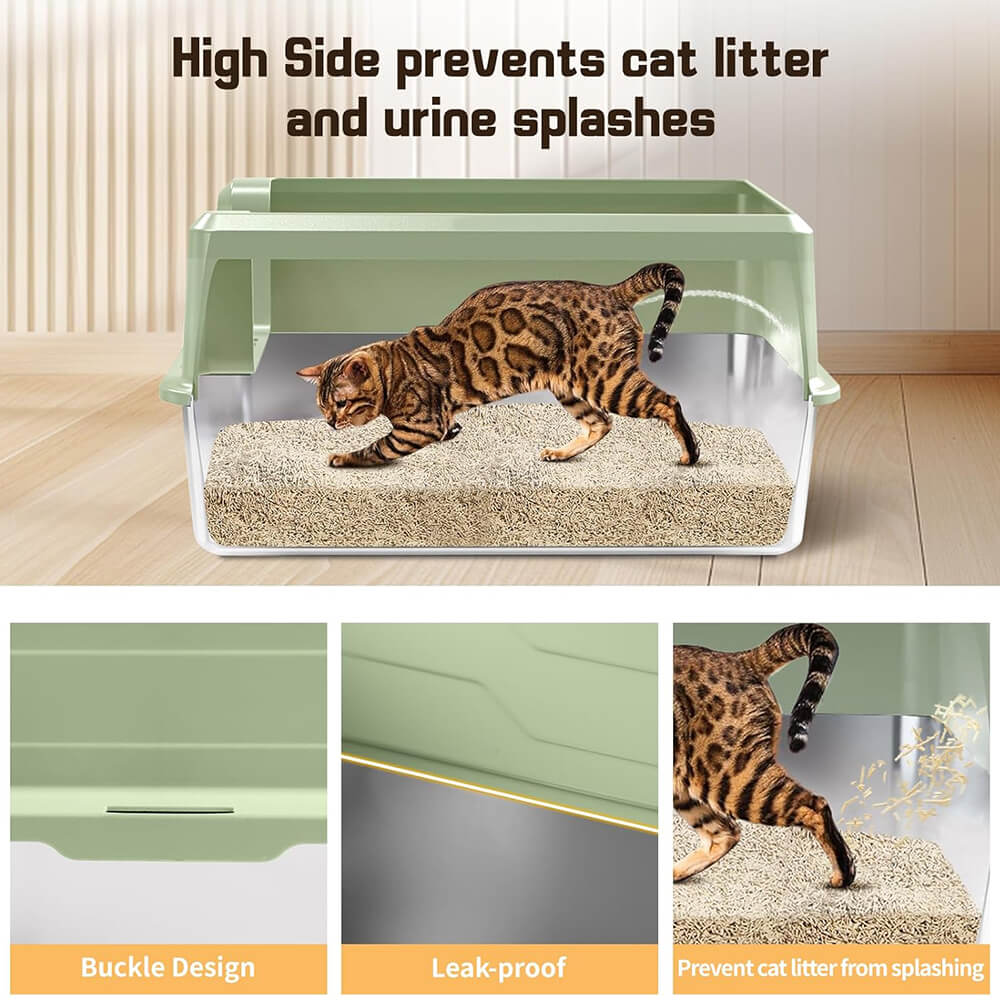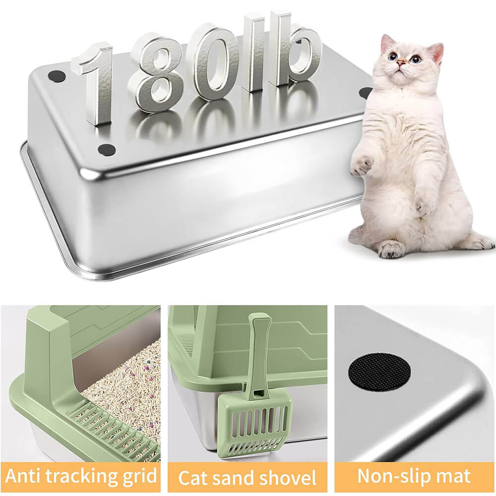 The elevated walls of this stainless steel litter box keep cat litter and urine contained, minimizing mess and keeping your floors clean.