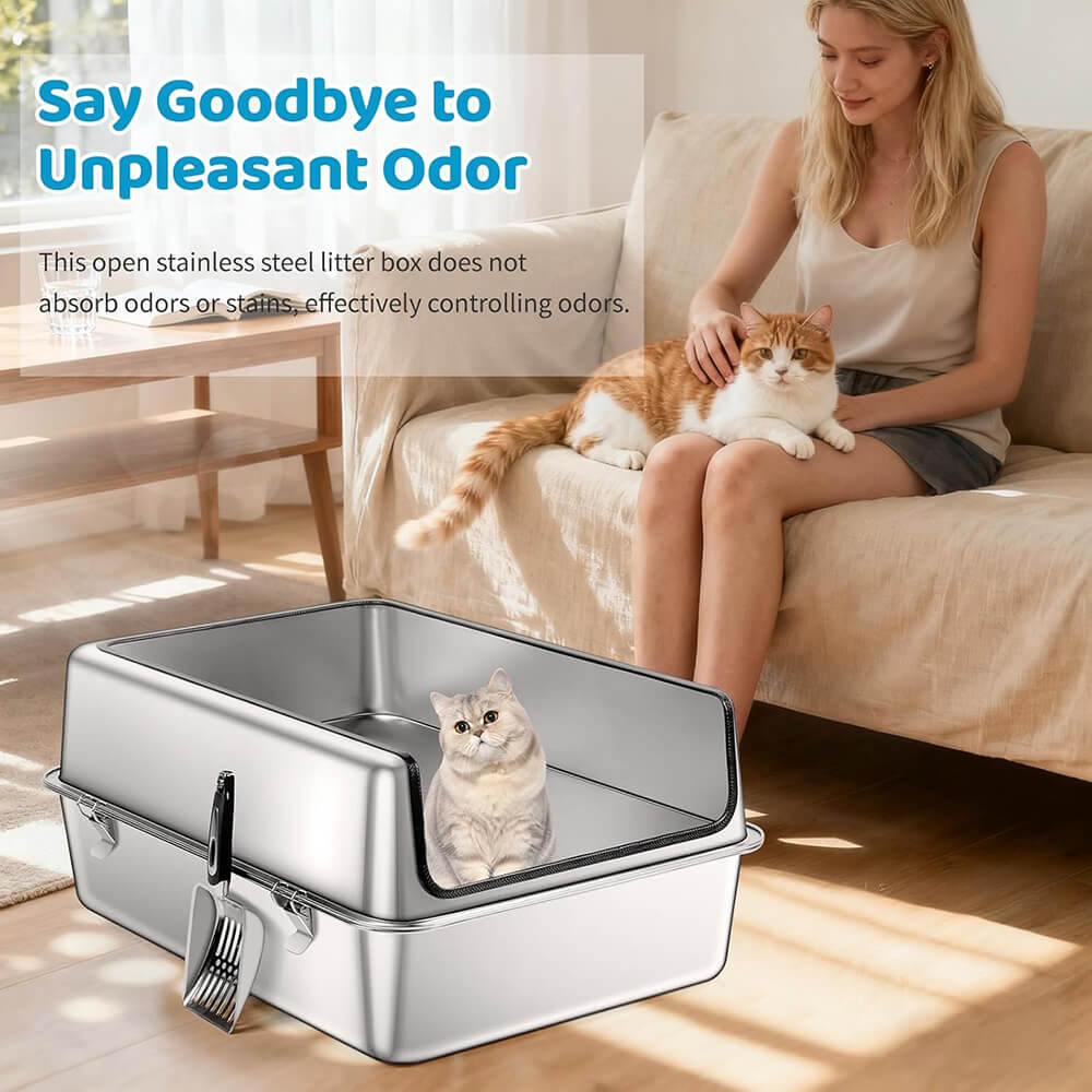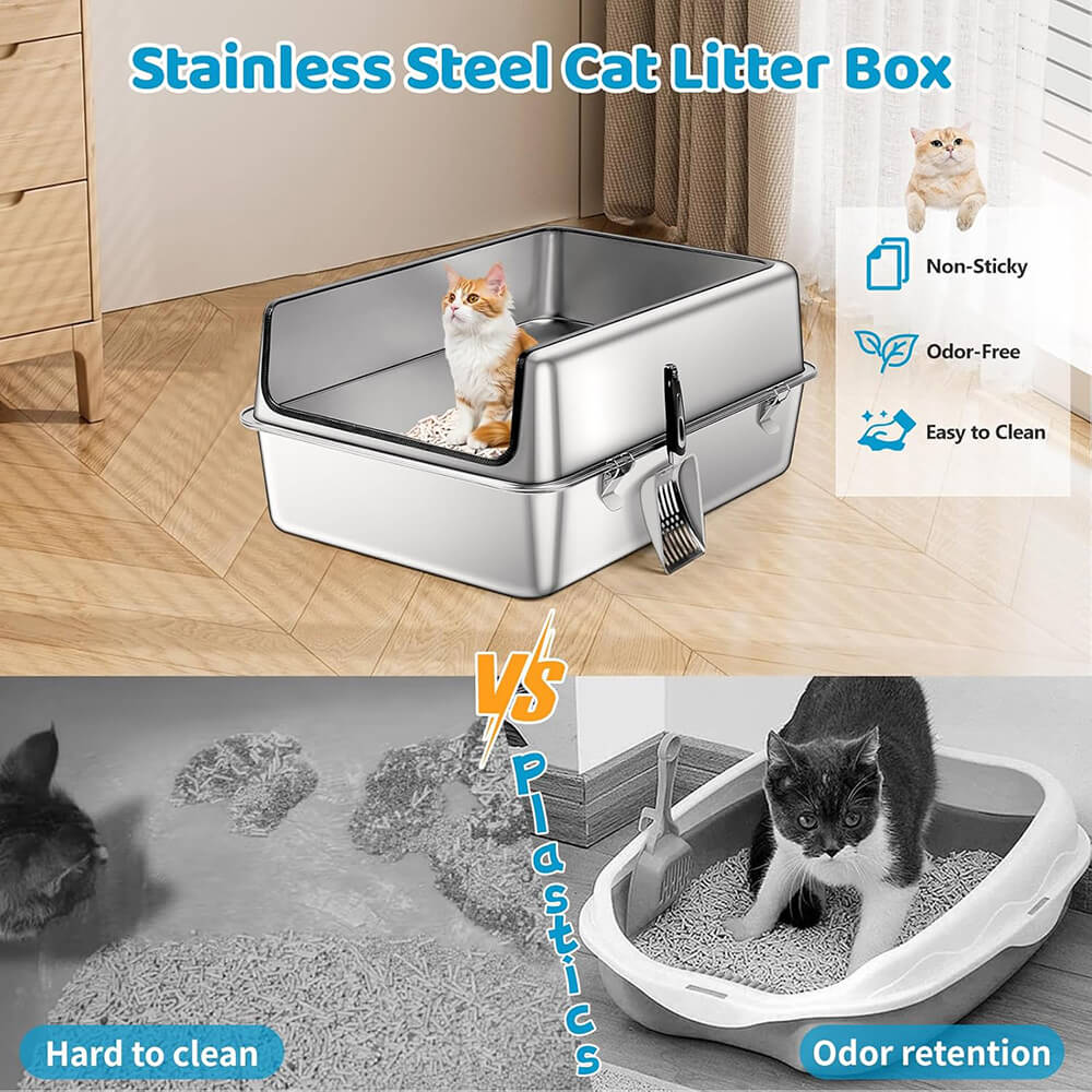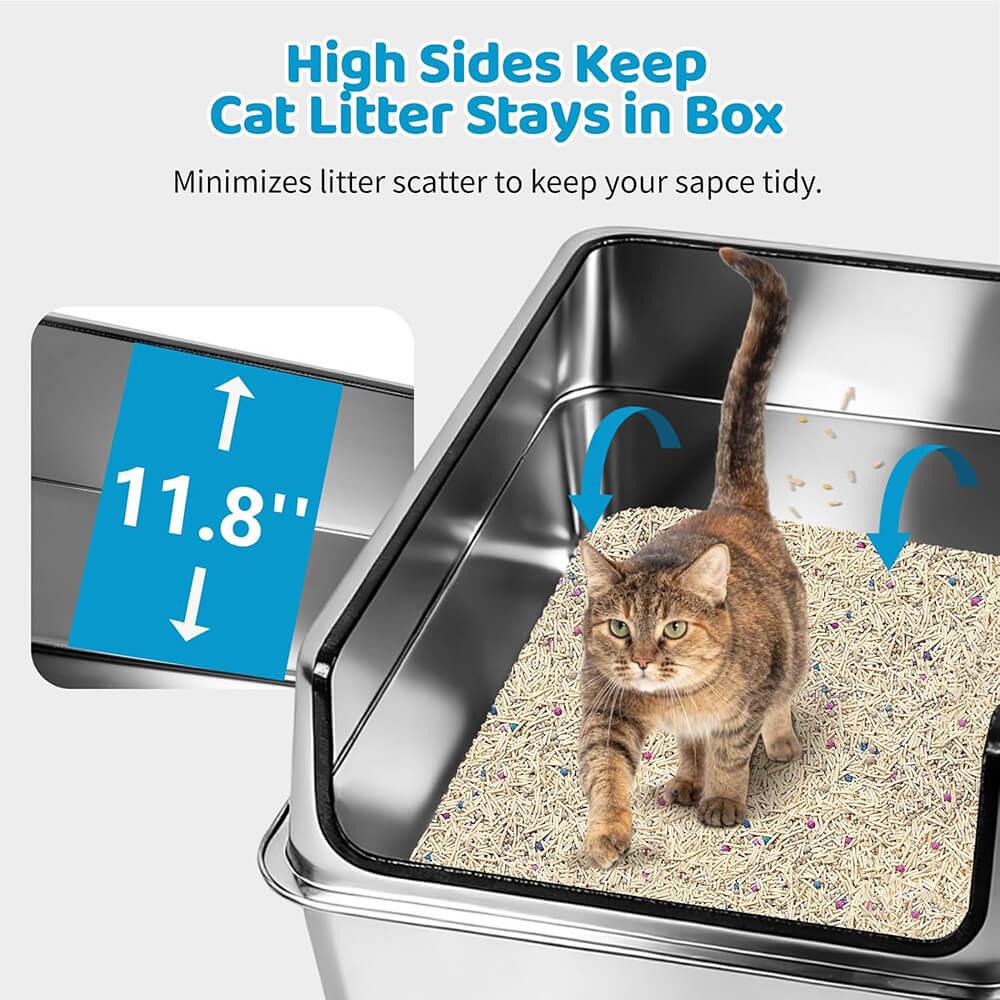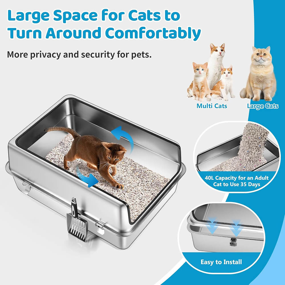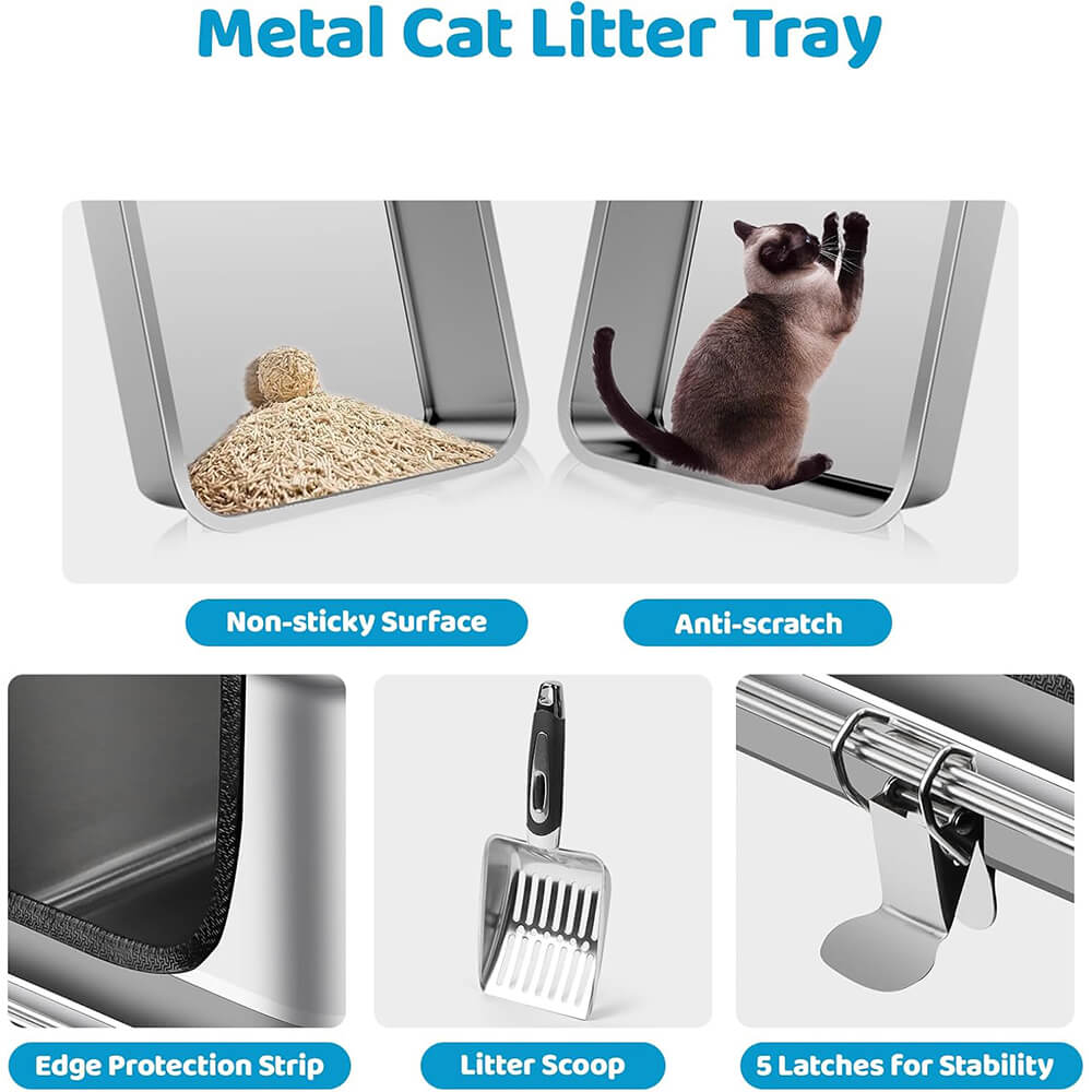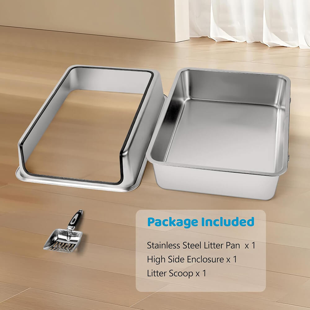 | Package Contents | 1× Stainless Steel Litter Tray, 1× High-Sided Enclosure, 1× Litter Scoop, 4× Non-Slip Feet, 1× Manual |